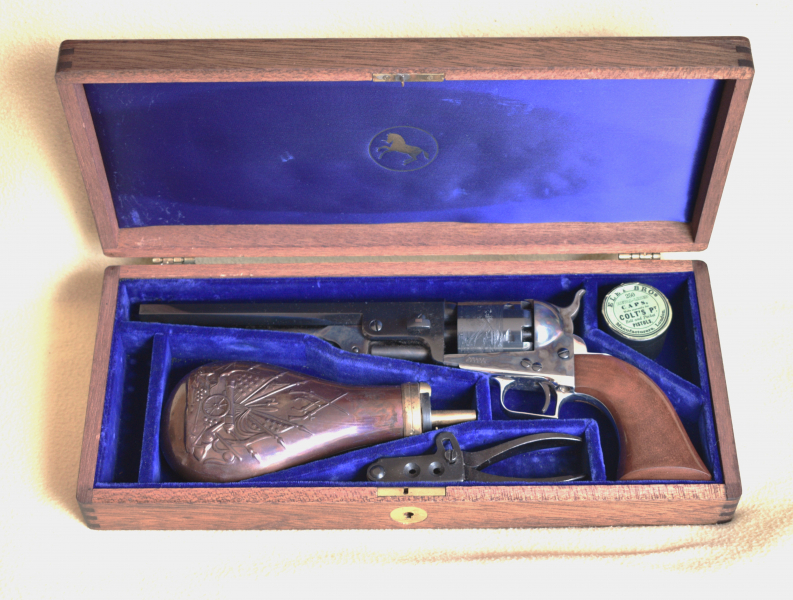 Für einen Schützenbruder biete ich diesen außergewöhnlich schönen Perkussionsrevolver im cal .36 in der originalen Colt Presentation Box an. Schlüssel vorhanden.