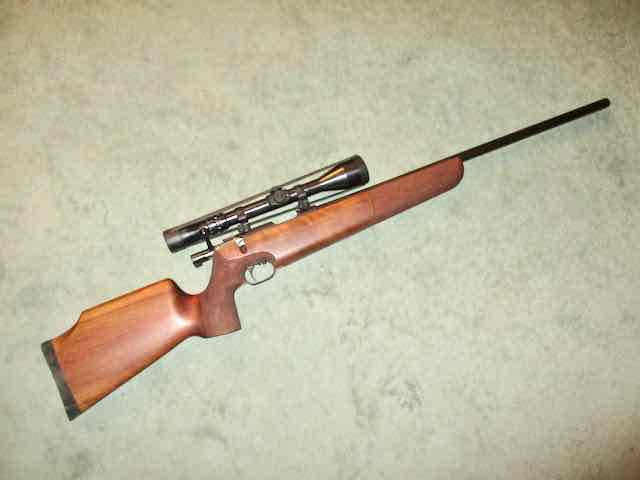 Wettkampfbüchse für DJV-Schießen, Fabrikat Walther, Mod. KJS 1, im Kaliber .22Hornet. Montiert mittels einer EAW-Aufschubmontage, mit Support