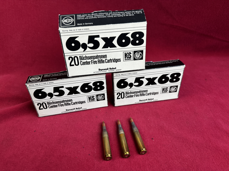 Es handelt sich hier um 6,5 x 68 Munition RWS, Kegelspitz Geschoss, 60 Schuss, 8,2g; 127 grains