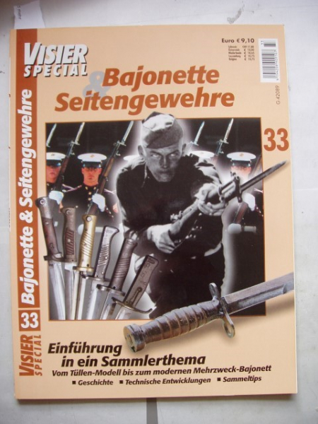 Für Schützen / Waffenfreunde und Blankwaffen-Sammler :+++ angeboten wird das VISIER - SPEZIAL Nr. 33 -- ** Bajonette - Seitengewehre ** -- Das Sonderheft -- Einführung in ein Sammlerthema -- Vom Tüllen Modell bis zum modernen Mehrzweck Bajonett -- Geschichte -- Technische Entwicklungen -- Sammeltips ++ Es ist ein Band - mit 115 Seiten - von 2004 (sicher schon eine Rarität). +++ Das Heft ist gebraucht, befindet sich aber in einem sehr guten Zustand +++ Der Versand erfolgt als Buchsendung mit DHL (unversichert) ; die Versandkosten gelten nur für Deutschland.+++ Bieter aus dem Ausland bitte Versandkosten vor Gebot erfragen.+++ Versandrabatt möglich, sehen Sie auch meine anderen Angebote.+++ Privatverkauf, daher keine Gewährleistung, Garantie oder Rücknahme.+++ Fragen bitte mailen.