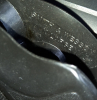Unten im Griff sind 2 kleine Einschnitte, nicht tief aber kosmetisch nicht schön. Keine Ahnung was das soll, ich nehme an da wollte jemand die Seriennr. des Revolvers die ja dort unten am Rahmen ist, sehen, geht aber nicht weil der Griff an der Stelle min. 10 mm dick ist.