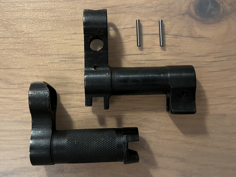 Mit dabei sind der Griff des Bajonetts und zwei neue Splinte zum Befestigen des Kornträgers (siehe Bilder)