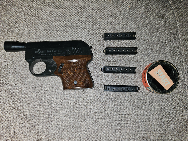 Halli Hallo... hier verkaufe ich eine orginale Röhm gefertigte Rg3. Mit dem Signalbecher und insgesamt 5 Magazine. Außerdem 100 Platzpatronen. Perfekt für Sylvester. Waffe wurde stets gereinigt nach dem schießen. 1 unbedeutenden Kratzer an der rechten Seite des sousagnenedm Schlitten.