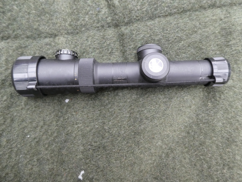 ZF ist neuerer Bauart, mit 30mm Mittenrohr Durchmesser, Absehen 4 Leuchtpunkt. Klebespuren einer vorherigen Montage sichtbar.