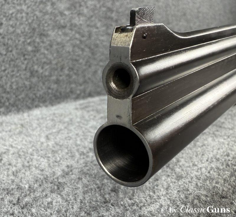 600 mm langes Laufbündel, Schrotlauf blank und der Kugellauf mit sehr gutem Zug-/ Feldprofil. Stahlteile mit sehr gut erhaltener Brünierung, Nussbaumschaft mit leichten Gebrauchsspuren.