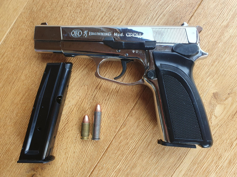 Angeboten wird eine BROWNING GPDA 8 im Kaliber 8mm K von 1986 in der vollchrom Ausführung. Ein echter Handschmeichler!.
