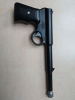 Luftpistole zum verschießen von 4,5 mm Diabolo, Pfeilen und Korken. Einzellader, der nach Zusammendrücken des Laufs von hinten geladen wird. Dazu wird ein Stift herausgeschraubt, das Projektil eingelegt und der Stift wieder hineingeschraubt. Korken werden natürlich nur vorne aufgesteckt. Alter unbekannt. Versand als DHL-Paket mit Ausweiskontrolle € 8,18. Auch als DHL-Päckchen für € 4,19 gegen Vorlage Ausweiskopie möglich.