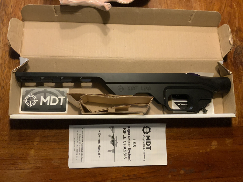 Aufgrund der Einstellung des Projektes verkaufe ich einen MDT LSS Chassis System für Remington R700 Right Hand Black, selbstverständlich auch für andere Remington 700 Klone mit SA System passend. War nur einmal Kurz montiert. Minimalste Gebrauchtspuren. Ein passender Schaft wird in weiterer Auktion angeboten.