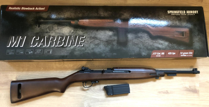 Verkaufe hier ein M1 carbine co2 Luftgewehr im Kaliber 4,5mm BB mit einem Echtholzschaft. Die Waffe hat einen BlowBack. Es wurden 4 co2 Kartuschen verschossen. Es ist also neuwertig. Keine Kratzer oder Beschädigungen. voll funktionsfähig. Ich verkaufe es, da ich auf ein Pressluftgewehr umsteige.