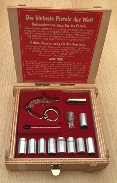 Sie bieten auf die kleinste Funktionsfähige Schreckschusspistole der Welt! Mit Deutschem PTB Beschuss.