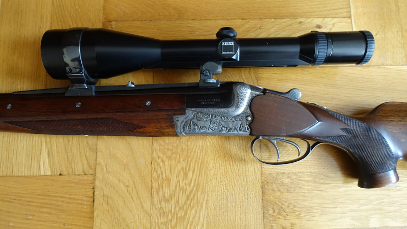 - Zwei Wechselläufe: Bock-Büchsflinte 7x57R + 12/70 und Bockflinte 12/70 + 12/70