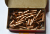 Angeboten werden 74 Stück Geschosse zum Wiederladen im Kaliber 6 mm / .243 Hornady Spire Point / Teilmantel Spitz, Geschoßgewicht 100 grain = 6,35 gramm, Flat base / flacher Boden, mit Crimprille.