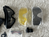 Schutzbrille mit drei Einsätzen: klares Glas, gelbes Glas und Metall‑Mesh‑Einsatz