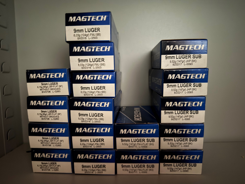 zum Erwerb steht eine Sammlung verschiedener Munitionssorten von Magtech in 9x19.