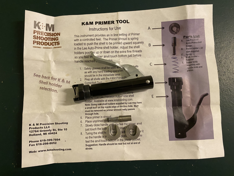 K&M Zündhütchensetzgerät (für Präzisionsschützen, sehr gefühlvolles Setzen der Zündhütchen möglich).