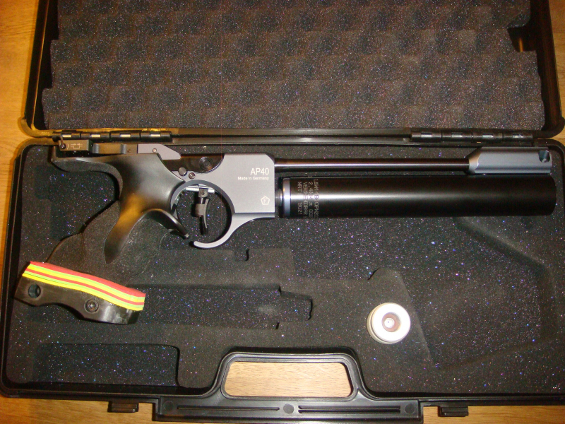 Im Auftrag einer Schützenkollegin wird eine HÄMMERLI AP 40 im guten Zustand mit Pressluft System von 200 Bar , Griffgröße S , mit Slimline Alukartusche ( intregierten Manometer ) 30 / 21 , justierbarem Matchabzug , Drehkorn , Visierung in der Längsrichtung verschiebbar , Lademulde für bequemes Nachladen , Adaptersystem für die Alukartusche und original Kunststoffkoffer verkauft . " BESONDERTHEIT " : Mitverkauft wird eine passende GEHMANN TURBO ( Luft ) PUMPE mit Adapter für die Alukartusche der AP 40 mit einer Leistung bis zu 270 Bar !! Die Kartuschenleistung reicht bis zu 300 Schuss ! Das ist ein Privatverkauf , daher keine Garantie , Umtausch , Rücknahme oder Wandlung ! Haftung für Verlust bzw.Beschädigung der Sendung / Ware , die über das Maß der Haftung des Zustellerdienstleisters hinausgehen , übernehme ich nicht und geht zu Lasten des Käufers !!