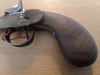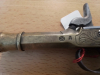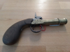 Bei der Waffe handelt es sich um eine Taschen Pistole Lauf und Kasten in Messing gearbeitet und verziert. Kanonenlauf in der Mitte 8 Kant, Kaliber.13 mm ohne Züge. Die Fertigung dürfte ca.1850 gewesen sein. Mechanik einwandfrei funktioniert Feder kräftig Griffsrück Nussbaumholz. Sehr guter Zustand siehe Fotos.