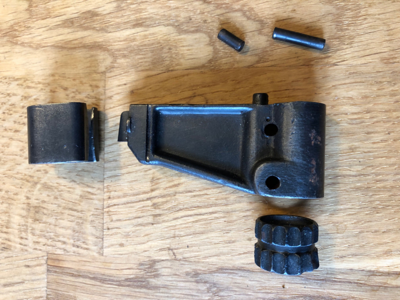 Kornhalter mit Stiften, Kornschutz und Mündungsmutter wie abgebildet.