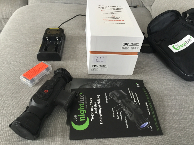 Lieferumfang: Nightlux JSA TA mit extra großen Batteriefach, 4 Akkus, Ladegerät, Original Tasche, Rusan Adaterring, etc. Siehe Abbildung. Dies ist ein Privatverkauf daher Umtausch und oder Garantie ausgeschlossen ausgeschlossen.