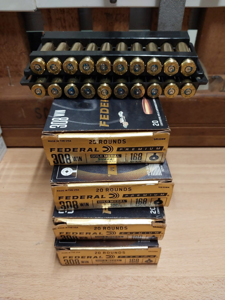 80 Hülsen von Federal, einmal abgeschossen und in keiner Weise bearbeitet. Verschossen aus Grünig&Elmiger Repetierer.