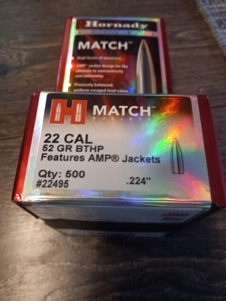 Sie bieten hier auf 1000 Geschosse Hornady Cal .22(.223) 52grs BTHP AMP #22495. Die Geschosse sind noch original verpackt und ungeöffnet.