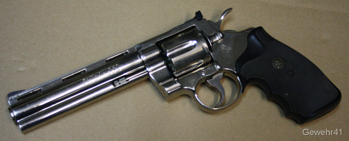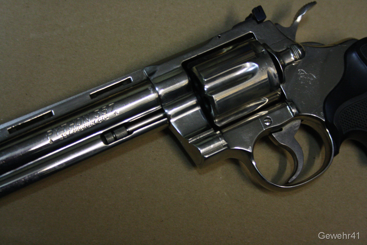 Sie kaufen diesen schönen Colt Python im Kal. .357 Mag. Er stammt aus Erstbesitz und wurde nicht viel geschossen. Etwas für den Kenner und Liebhaber. Lauf und Funktion einwandfrei.