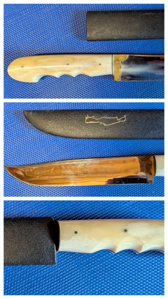 Jagdmesser mit Poliertem Horngriff und Griechischer Gravur auf der Klinge Länge ca 30 cm siehe Bilder