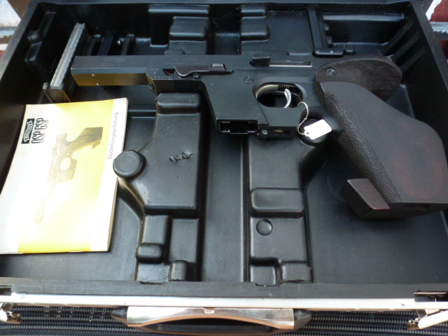 Zum Verkauf steht eine Walther GSP mit schwarzem Sportgriff. Die Waffe kommt in einem Koffer, inklusive Bedienungsanleitung und einem zweiten 10-Schuss Magazin.