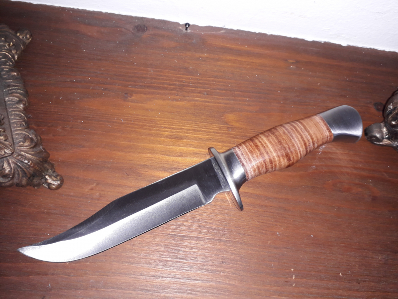 Tolles Bowiemesser. 14,5cm Klingenlänge. Stabil und liegt gut in der "großen" Hand. Klinge ist einwandfrei, schmierer sind von mir, erkenne