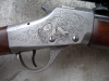 Gravuren auf beiden Seiten der Basküle und dem Öffnungshebel, links, Gebirgsscene mit Muffelwild, rechts treibender Bock im Wald mit Weinlaubumrandung,
