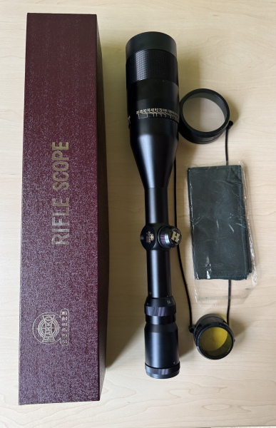 Verkaufe Hakko Zielfernrohr Serie Superb 4-16x56 Absehen 4 (nicht beleuchtet), 1. Bildebene!, Range Focus (Paralaxeausgleich), mit Objektiv-/Okularschutz, Putztuch, ausführlicher Anleitung und Originalpackung.