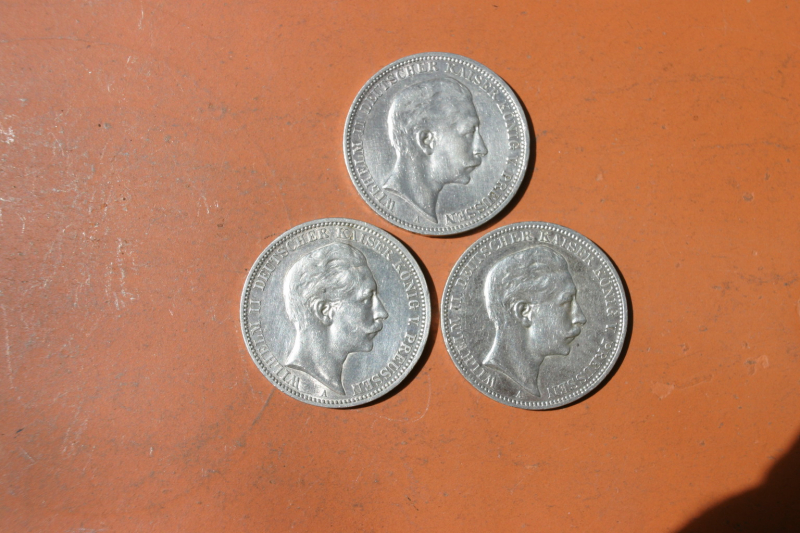 Silber Münzen alte deutsche 3 Reichsmark 3x Wilhelm II