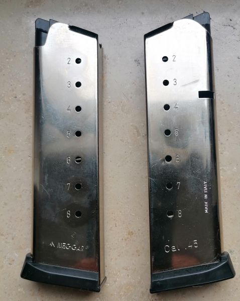 2 Stück Magazine für 1911er-Pistolen Kaliber 45 Auto der Firma Mec-Gar.