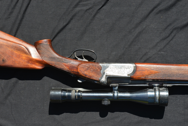 Prinz Bockbüchsflinte 16-70/7x57R mit ZF Kahles 3-9x42 SEM Lauf 64 cm, Schaft 34 cm Rückstecher, kein Ejektor, Tierstückgravur beide Seiten, unten Girlanden. Schloss fest, Läufe gut, Kugellauf eine kleine Rostnarbe, sonst alles blitzblank.