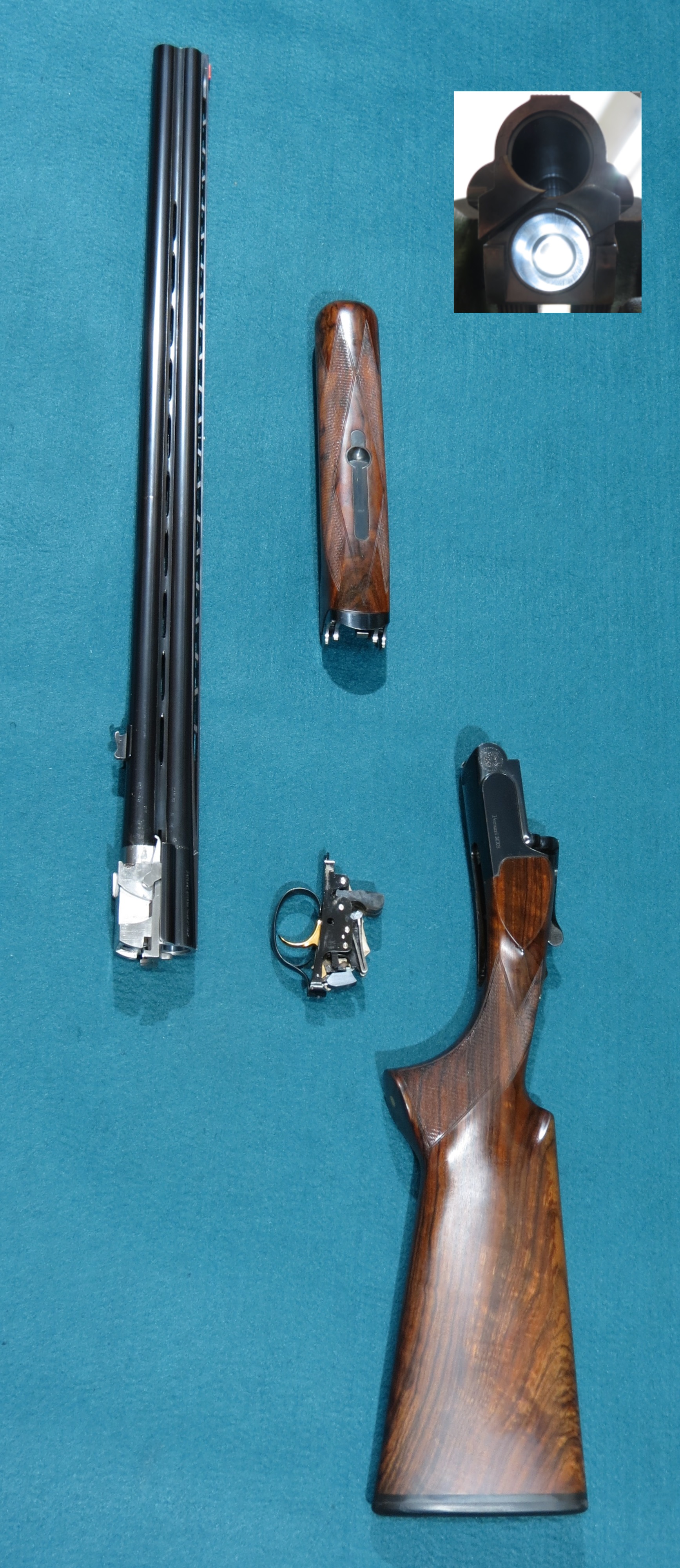Choke oben Voll unten ¾ Schaftlänge 38cm mit originaler Perazzi Gummischaftkappe.