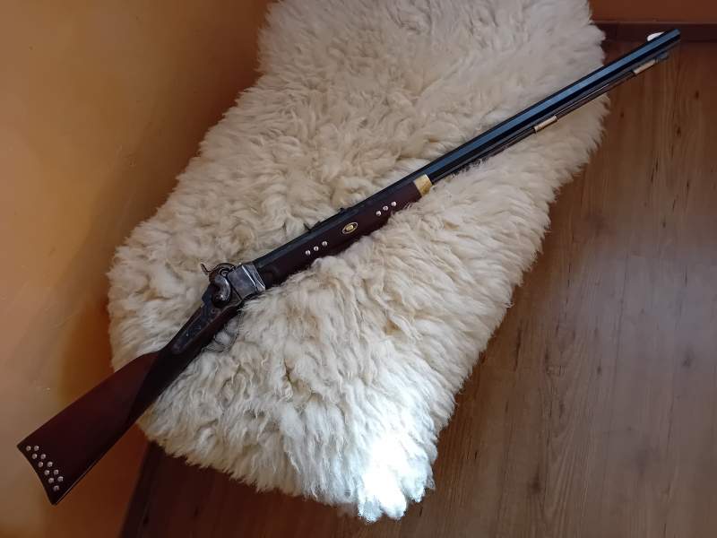 Biete aus Nachlass die hier abgebildete Sharps Rifle im Cal 45 von Armi Sport. Es handelt sich hierbei um ein absolutes Einzelstück mit Perkussionszündung für Schwarzpulver, frei ab 18 Jahre. Diese Sharps kann mit Papierpatronen oder mit den mitgelieferten Hülsen geladen werden. Das System ist dadurch dicht. Hülsenauszieher, Reinigungsbürste und Abdichtplatte für Papierpatronen ist dabei. Ob es sich hierbei um ein Umbau handelt, entzieht sich meiner Kenntnis, Beschusszeichen sind vorhanden. Die Schussbelastung ist ebenfalls nicht bekannt. Das Gewehr befindet sich in einem guten Zustand mit geringen Gebrauchsspuren. Der Lauf ist brüniert, ca.81 cm lang, mit tiefen Feld-Zug-Profiel und ist absolut blank ohne Rost. Gesamtlänge ca. 125 cm. Der geölte Vorder und Hinterschaft sind aus Nussbaumholz. Der Abzug ist natürlich mit Stecher. Bilder sind Bestandteil der Auktion, (ohne Schaffell). Fragen werde ich so gut ich kann beantworten. Versandkosten in EU bitte vor Gebot anfragen. Privatverkauf daher keine Garantie und Rücknahme wie üblich.
