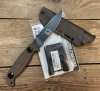 Das Eickhorn GDK ( Gemeinschaft Deutscher Kommandosoldaten ) ist ein Sondermodel mit Sonderfarbe. Das Messer basiert auf einem Design von Andreas Weitzel. Die Griffschalen bestehen aus erdfarbenem G10. Das Messer liegt sehr gut und satt in der Hand. Es ist sehr führig. Seiner Bestimmung nach sehr scharf geschliffen. Lieferung mit brauner Kydexscheide die das Messer spielfrei trägt. Dabei ein Tek Lok. Das Messer ist absolut neuwertig und unbenutzt. Klingenstahl Böhler N695, Klingenstärke ca 4,7 mm, Klingenlänge ca 11,7 cm, Gesamtlänge ca 23,7 cm, Gewicht ca 220 g. Neupreis ca 335 €. Denkt dran es ist bald Weihnachten ! Gönnt euch mal was besonderes ! Keine weitere Garantie oder Rücknahme. Lieferung nur innerhalb Deutschland.