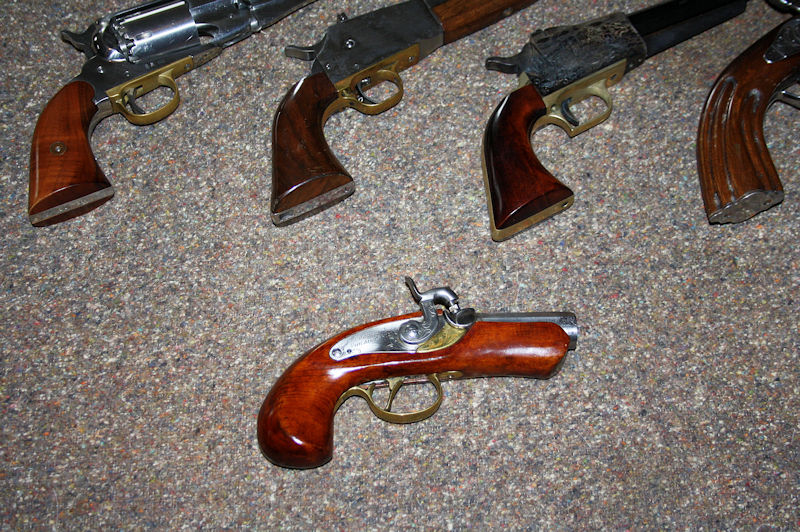 Sammlung auflosung verstorbene freund. Derringer Philadelphia pistole .45 schwarzpulver von Spanishe hersteller Dikar. Hat am unterseite lauf 2 locher, so nicht funktionsbereit / deko. Der abzug ist aber vollig inortnung, so vielleicht fur teile oder nur zur dekoration.