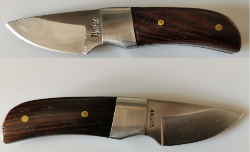 - Gravierungen auf der Klinge: eine Seite ROSTFREI, andere Seite 440205