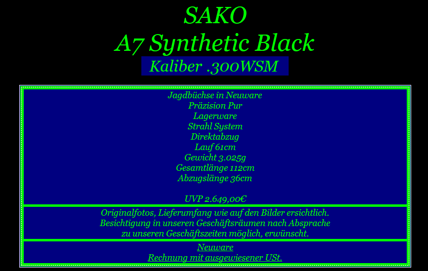SAKO A7 Synthetic Black Kaliber .300WSM / Neuwaffe