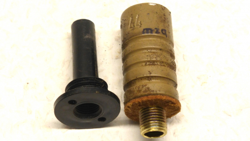 Sie bieten auf einen Buck-Zünder, SF5 Typ A, Reproduktion. Der Zünder besteht wie das Original aus Aluminium, mit Messing-Gewinde, Standard Gewinde, M10x1, für Minen und Handgranaten. Dichtring aus Leder, Original Abmessungen, Lackierung RAL7028, Wehrmachts dunkelgelb, ab April 1943. Wurde zusätzlich gealtert. Gestempelt mit 44 und mzq Herstellercode für Chemische und Technische Erzeugnisse, Inhaber Dr. Hans Buck, Göppingen. Der Buckzünder kam vielfältig zum Einsatz z.B. Glasmine, Topfmine, W1 Mine und diverse Behelfsminen. Ein Original Zünder ist nicht zu bekommen, da dieser aus hauchdünnen Alu besteht, was bei einer 5kg Last zerbricht, um die Säureampulle zu zerstören. Das Alu ist nach 80 Jahren und schlechter Lagerung sehr marode. Um den Zünder zu entschärfen und die Ampulle zu delaborieren, müsste das dünne Alu in der Falz geöffnet und wieder geschlossen werden. Daher nicht auf den Markt. Durchmesser: 20mm - Höhe: 40mm - Gewicht: 33g - REPRO - Keine gefährlichen Stoffe! - Dabei ist eine leere original Bakelit Zünderbuchse für die Sprengkapsel Nr. 8. Gewinde außen M16 - innen M10x1 - Das Bild 5 dient der Darstellung und ist nicht Bestandteil dieser Auktion und steht auch nicht zum Verkauf an. Der Versand erfolgt als Maxibrief/Einschreiben für 5,00€ innerhalb Deutschland - EU 10,50€ mit Sendungsverfolgung - Dieses ist eine Privatauktion - keine Garantie oder Rücknahme.