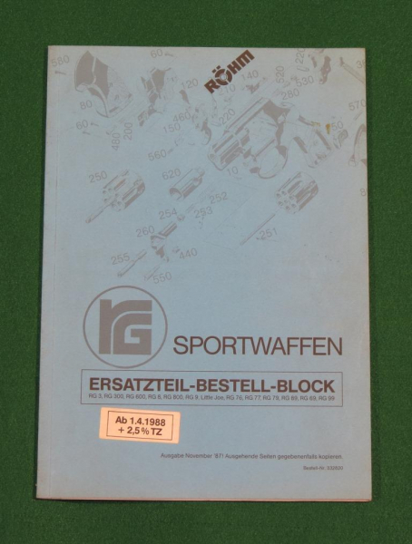 Original Ersatzteilbestellblock für Röhm Sportwaffen von 1987