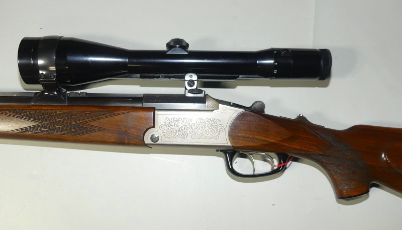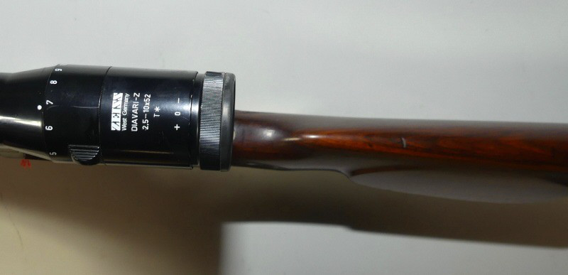 Wir bieten Ihnen hier im Kundenauftrag eine Blaser BBF Kaliber 7x65R, 16/70 mit Handspannung, verschraubten Vorderschaft, vorder Abzug mit Rückstecher, hinterer Abzug, trockener, überarbeiteter Flintenabzug. Zimmermann, Wildflecken mündungslanger Einstecklauf, im Kaliber .222 Rem. Mittels Suhler Einhakmontage wurde ein Zeiss Diavari 2,5-10x52, Absehen 1, ohne Leuchtabsehen montiert. Das ZF liefert ein glasklares Bild - Höhen- und Seitenverstellung rasten wie es sein soll, die Schärfeeinstellung funktioniert tadellos. Alles in allem eine Gelegenheit ein Jagdgewehr mit hohem Gebrauchswert zu erwerben! Lauflänge: 61 cm, Gesamtlänge: 102,5 cm. Maß vorderer, eingestochener Abzug - Ende Gummischaftkappe: 36 cm. Bei Fragen, tagsüber zur normalen Geschäftszeit: 09231 72900, oder per Email.