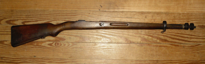 Sie bieten auf einen Mauser K98/1943 Holzschaft aus Spanien. Mit Schaftkappe und Ringen. An der Querverschraubung ist ein Stück ausgebrochen, ansonsten i. O. Gut gebraucht, technisch i. O.