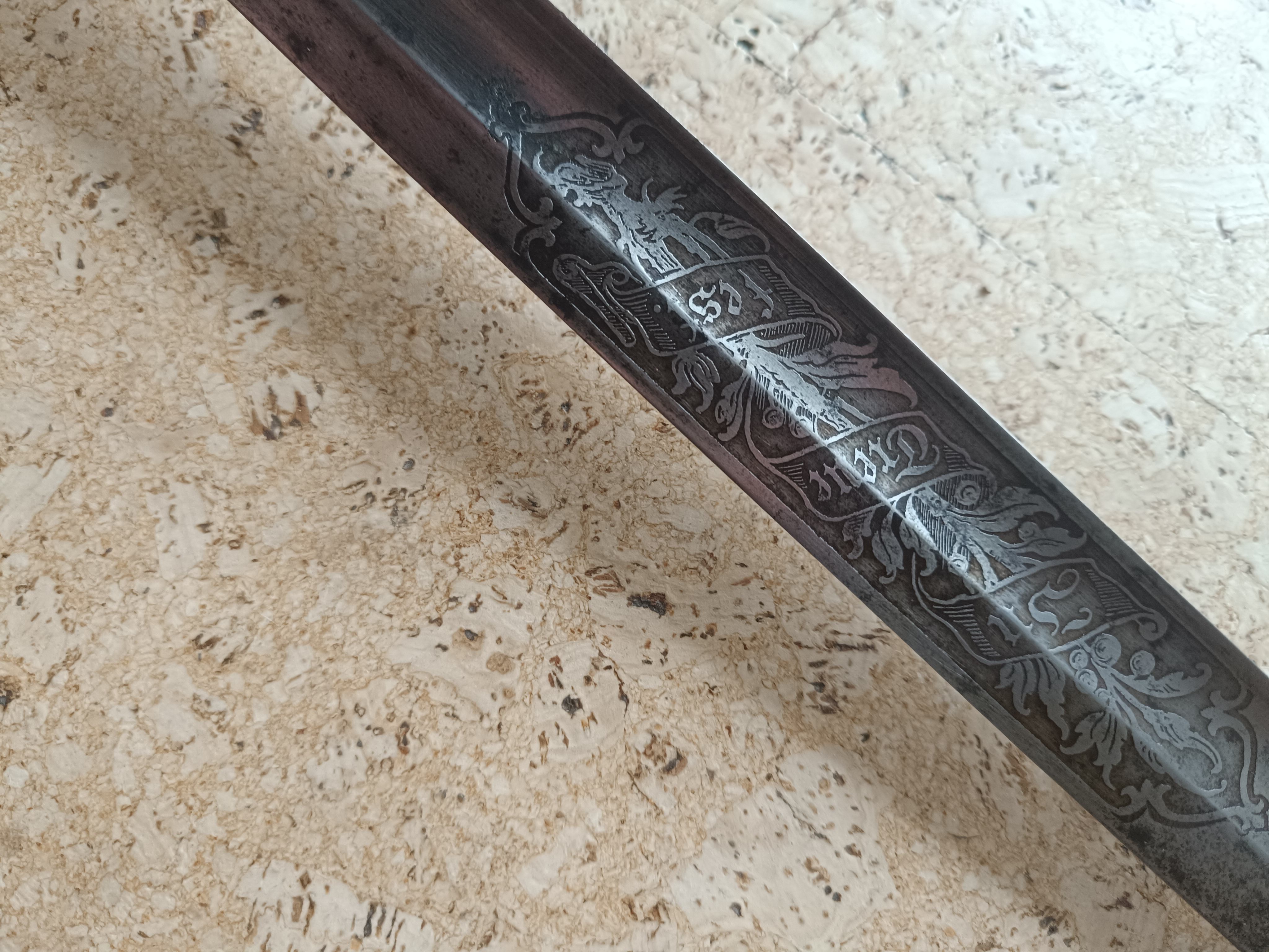 der Säbel geht vollständig in die Scheide saugend,da die Scheide mit original Farbe ein paar Beulen aufweist die Klinge ist sauber mit in Treue Fest krawur die Kammer Abnahme ist Ludwig 1894 und der Regiment Abnahme 20,R,L,1, Landwehr es sind noch weitere Punzen vorhanden dies ist ein privater Verkauf keine Rücknahme keine Garantie