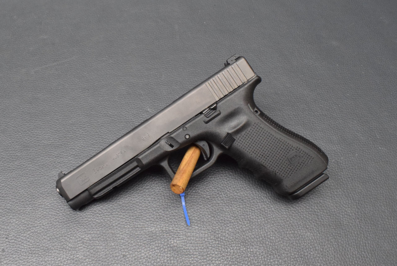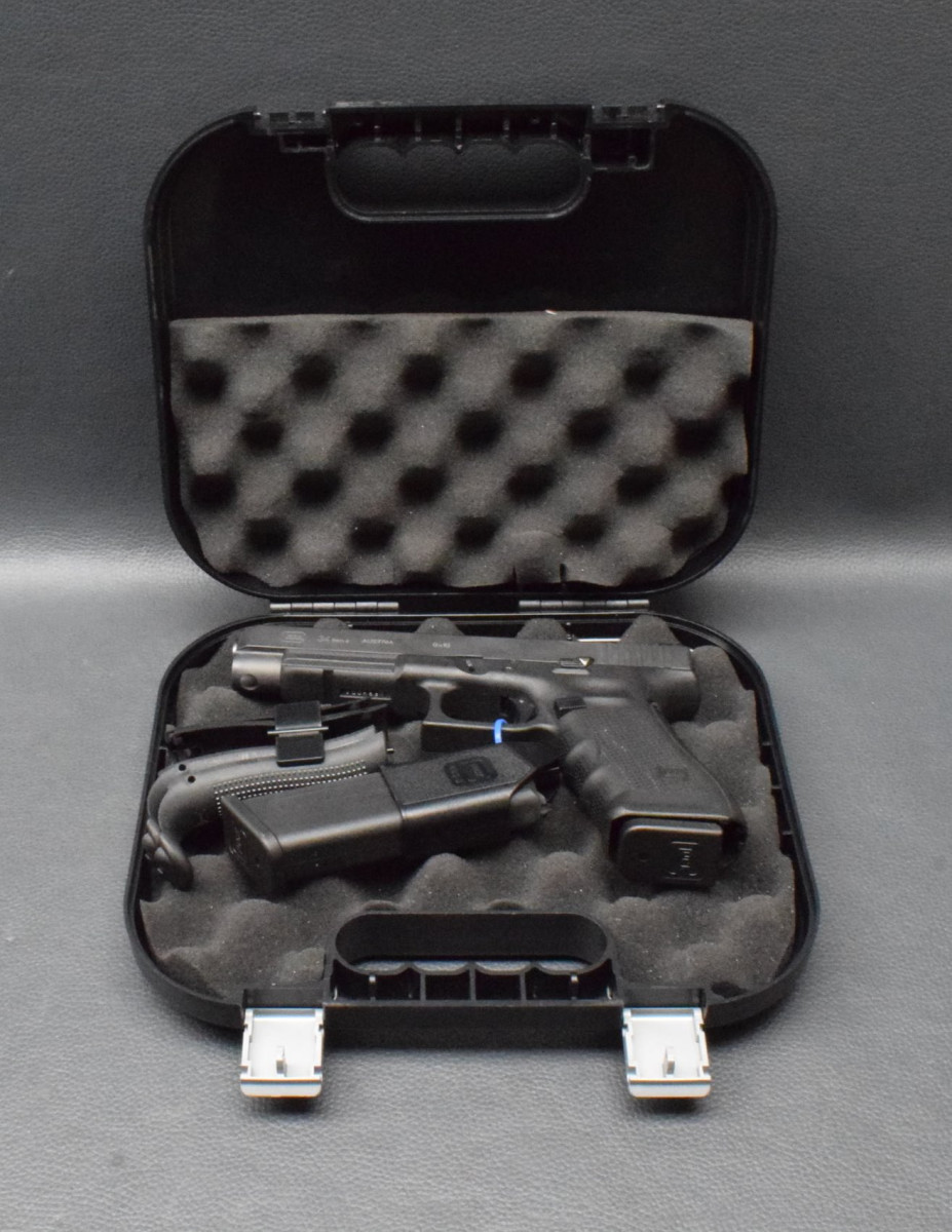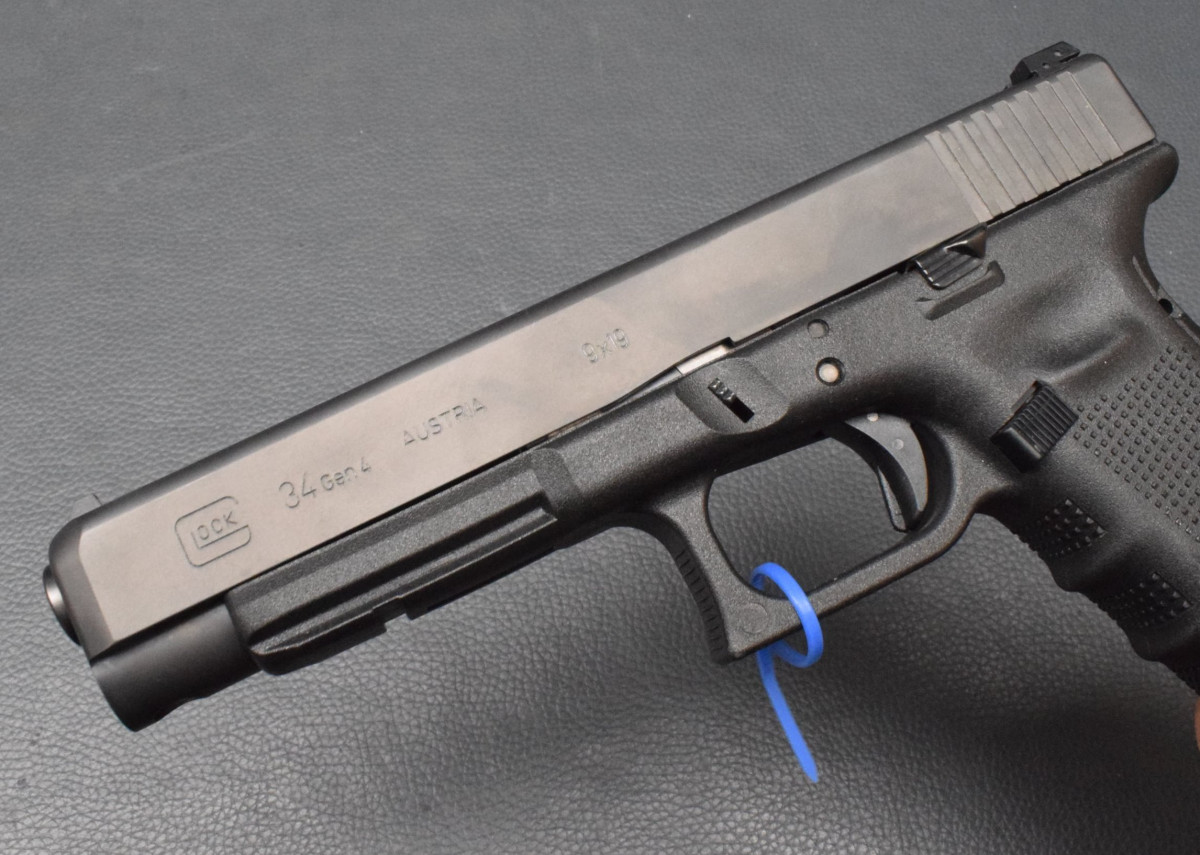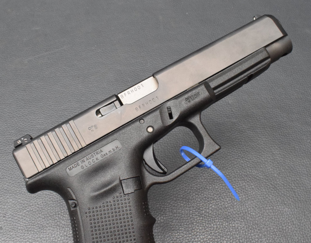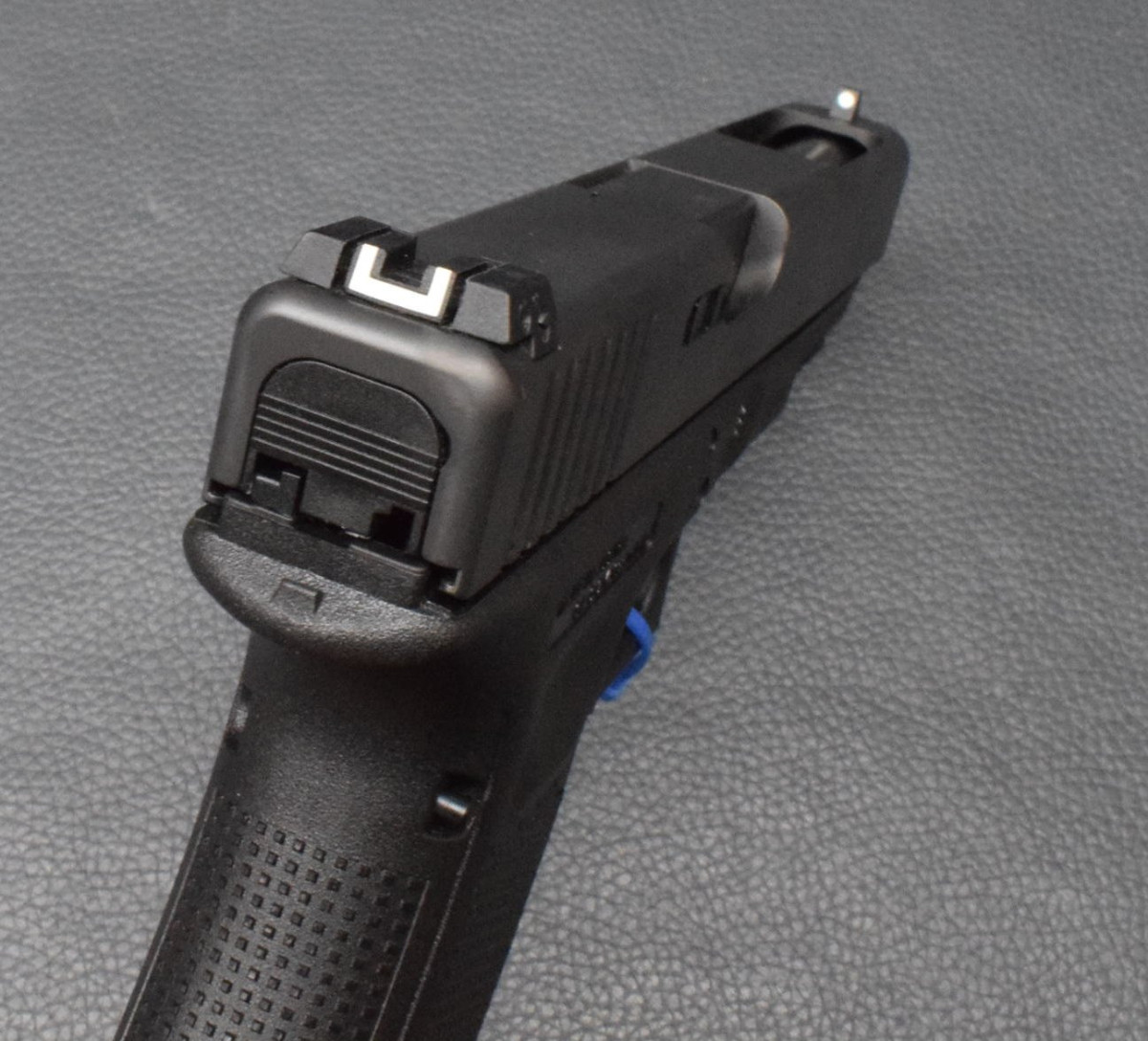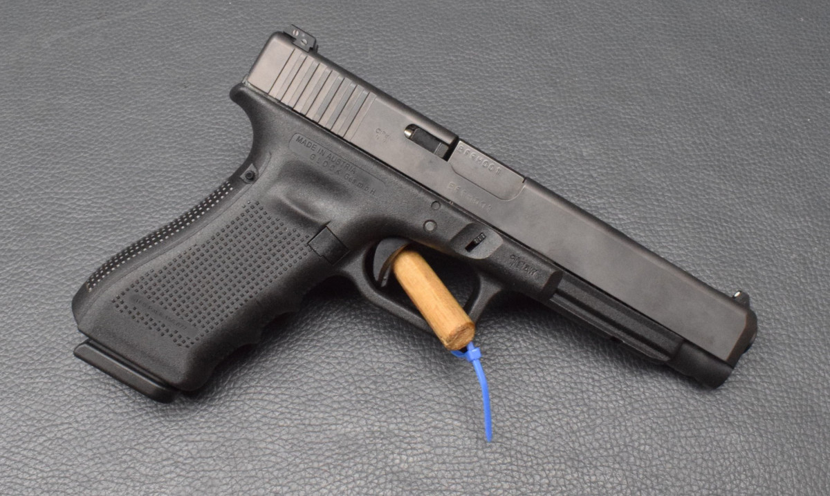 Abzugsdistanz bei Glock-Pistolen. Der Magazinhalter der Gen4 ist wechselbar und die Auflagefläche ist vergrößert.