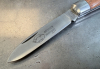 Traditional Otter Single Blade Pocket Knife. This knife is easily 10-15 years old but has not been used. Wooden grips, stainless blade that rests almost centered when closed, no blade rubbing the liners. A nice, classic, old-school style two-hand opening folding pocket knife. I do not believe this exact model is currently in production. The knife has a sturdy back spring Made in Solingen! Condition: Mint, as new, never used or sharpened.