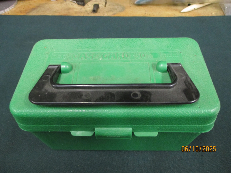 1 Case Gard Patronenbox 50, mit Gebrauchsspuren/Aufklebern, aber voll in Ordnung, Innenhöhe ca. 9cm
