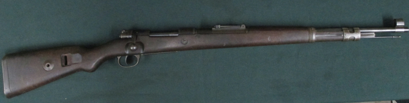 Karabiner K98k der Mauserwerke Oberndorf aus dem Portugal Contract von 1941, absolut baugleich mit dem Wehrmachtskarabiner, bis auf die Bestempelung mit dem portugisischem Staatswappen und der seitl. Beschriftung "Mauser Werke Oberndorf a N" statt "Mod 98". Der Karabiner ist nummerngleich mit allen Stempeln, Neubeschuss, guter Lauf