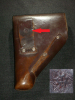 Pistolentasche Walther PPK , Leder braun , aufgesetzte Magazintasche , Koppeltrageschlaufe und Abdeckklappe wurden durch Nieten aus der Zeit ersetzt, Es befindet sich ein Hersteller Zeichen auf dem Koppeltrageschlaufe , Stern mit G.D.H , (siehe Foto) Gebrüder Dewald Hachenburg, sonst guter Zustand